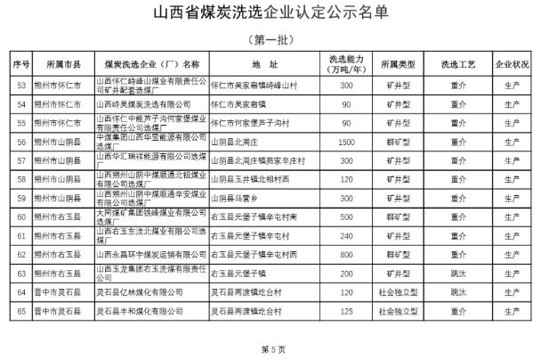 日前,省能源局公布了第一批山西煤炭洗選企業(yè)認(rèn)定名單,涉及7個(gè)地市65家企業(yè)入選。