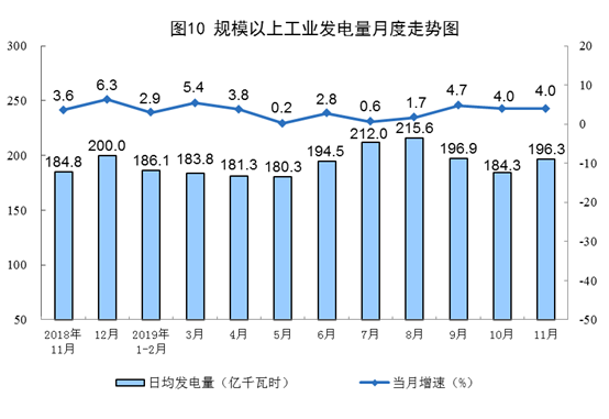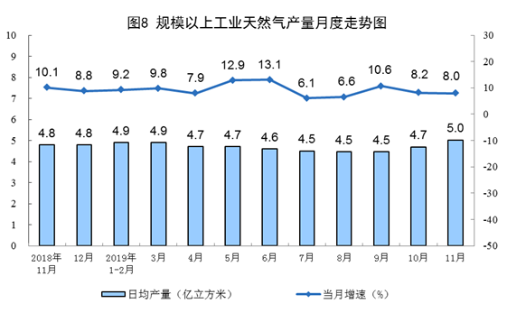 11月份,規(guī)模以上工業(yè)原煤、原油生產(chǎn)有所加快,天然氣生產(chǎn)保持較快增長,電力生產(chǎn)平穩(wěn)增長。