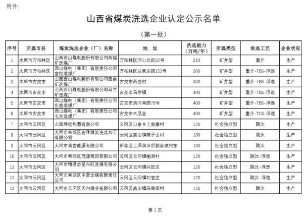 第一批山西煤炭洗選企業(yè)認(rèn)定名單公布