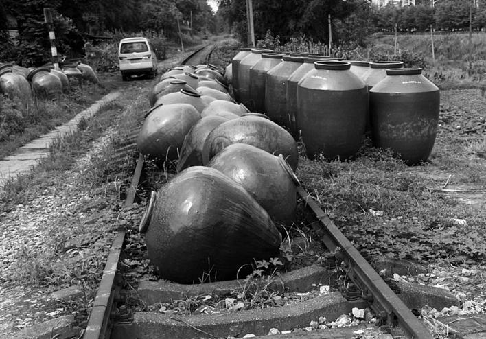 曾經的煤炭運輸鐵路專線而今成為陶瓷廠的臨時堆放場