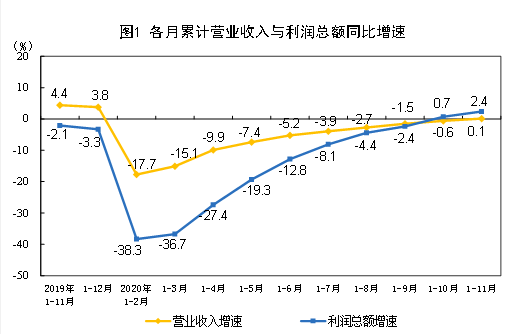 1—11月份,全國規(guī)模以上工業(yè)企業(yè)實現(xiàn)利潤總額57445.0億元,同比增長2.4%(按可比口徑計算,詳見附注二),增速比1—10月份提高1.7個百分點。 1—11月份,規(guī)模以上工業(yè)企業(yè)中,國有控股企業(yè)實現(xiàn)利潤總額14456.9億元,同比下降4.9%;股份制企業(yè)實現(xiàn)利潤總額40580.1億元,增長2.3%;外商及港…